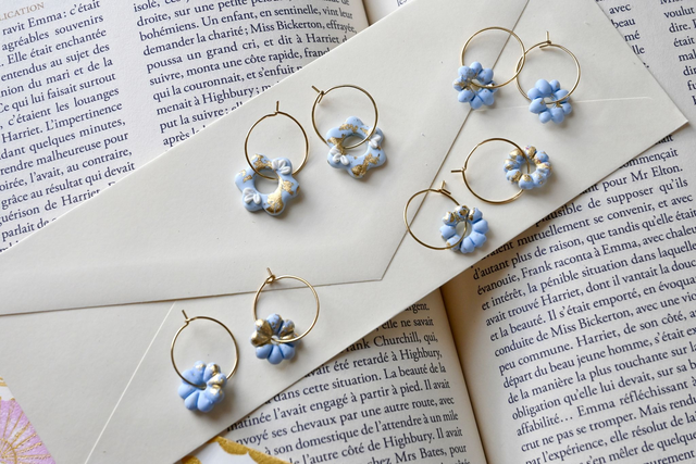 Ces boucles d'oreilles sont sculptées à la main en pâte polymère. Chaque pièce est unique et peut comporter de légères variations. Tous mes bijoux sont conçus à la main avec patience et rigueur. Les bijoux en pâte polymère sont résistants aux chutes, mais doivent être manipulés avec précautions lorsque les pièces possèdent des éléments en relief. Afin d'assurer la pérennité de votre bijou, manipulez-le avec précaution en évitant d'exercer une pression sur les éléments en relief.