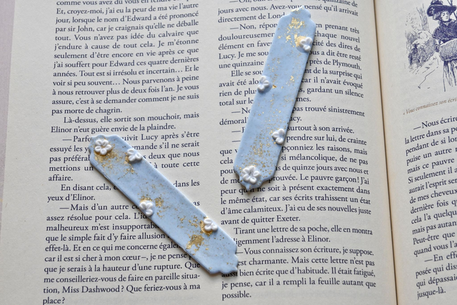 Ce marque page est sculpté à la main en pâte polymère. Chaque pièce est unique et peut comporter de légères variations. Tous mes bijoux sont conçus à la main avec patience et rigueur. Les objets en pâte polymère sont résistants aux chutes, mais doivent être manipulés avec précautions lorsque les pièces possèdent des éléments en relief. Afin d'assurer la pérennité de votre marque papge, manipulez-le avec précaution en évitant de le plier.