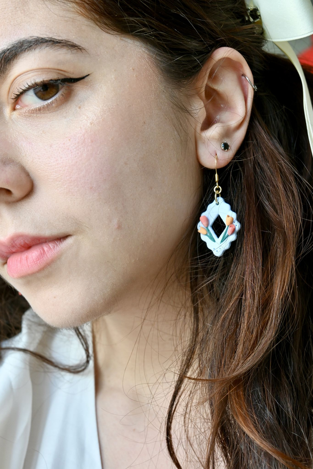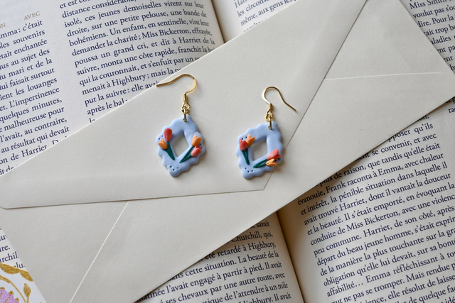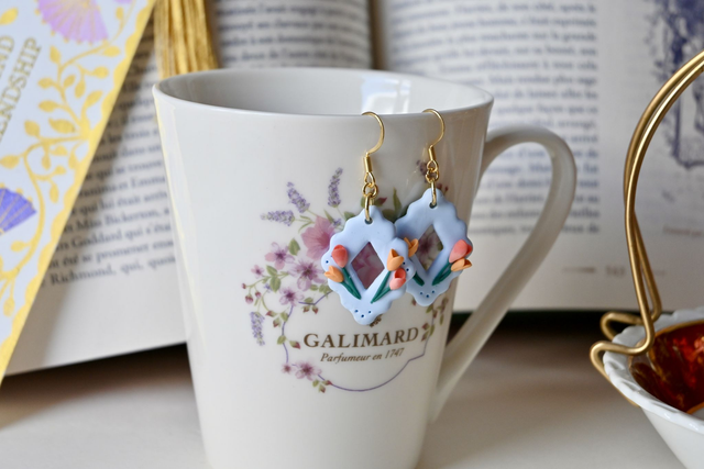 Ces boucles d'oreilles sont sculptées à la main en pâte polymère. Chaque pièce est unique et peut comporter de légères variations. Tous mes bijoux sont conçus à la main avec patience et rigueur. Les bijoux en pâte polymère sont résistants aux chutes, mais doivent être manipulés avec précautions lorsque les pièces possèdent des éléments en relief. Afin d'assurer la pérennité de votre bijou, manipulez-le avec précaution en évitant d'exercer une pression sur les éléments en relief.